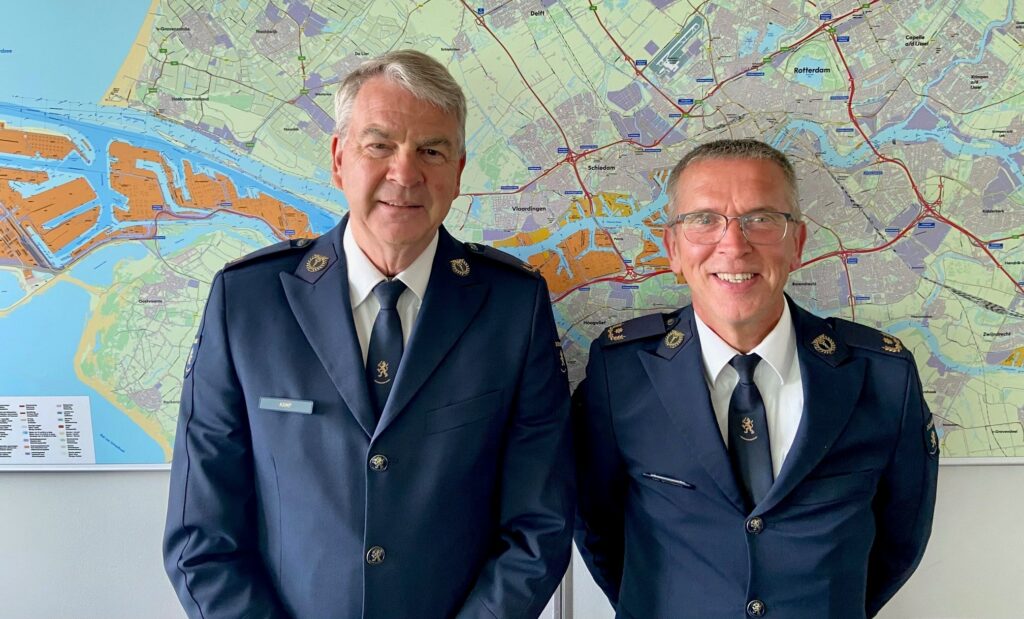 Jan Kamp (links) was de afgelopen 4 jaar regiodirecteur Douane Rotterdamse Haven. Hij werd recentelijk opgevolgd door Peter van Buijtenen (rechts). Beiden bekleedden de afgelopen decennia meerdere functies bij de Douane en kennen zodoende alle facetten van het douanevak.