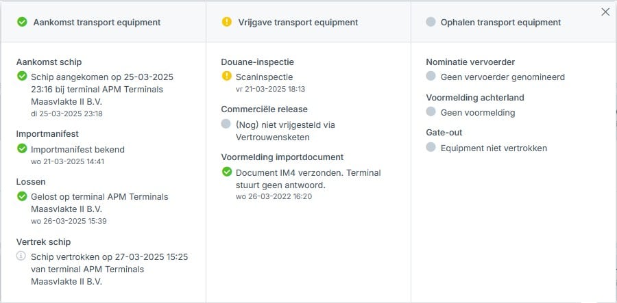 Met de komst van de Vertrouwensketen hebben we Basic en Extended Tracking geïntroduceerd. Binnen de Vertrouwensketen kun je worden toegewezen aan een B/L die je nog niet zelf trackt(. Hierdoor krijg je ‘Basic Tracking’ toegewezen: de minimaal benodigde informatie voorde Vertrouwensketen. Dit betekent dat je geen volledig inzicht hebt in je lading en niet langer actief wordt geïnformeerd over de status.