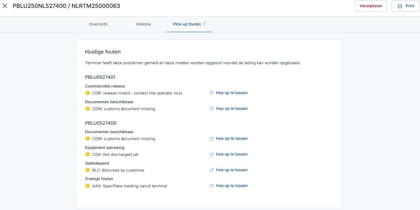 Voor gebruikers van Cargo Controller is aanvullende toelichting nodig over deze informatie, maar ook de opdracht om dit op te lossen met de rederij of terminal.