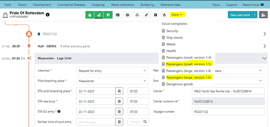 - Vanaf maandag 20 november 2023 kunt u de nieuwe template uploaden in de service Melding Bemanning en Passagiers;