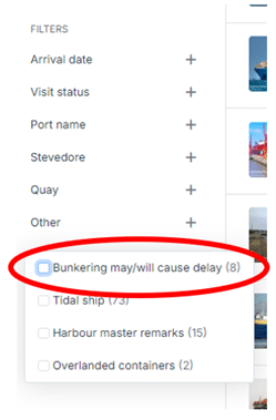 Op het overzicht van de scheepsbezoeken worden deze waarschuwingen eveneens getoond en er kan op gefilterd worden.