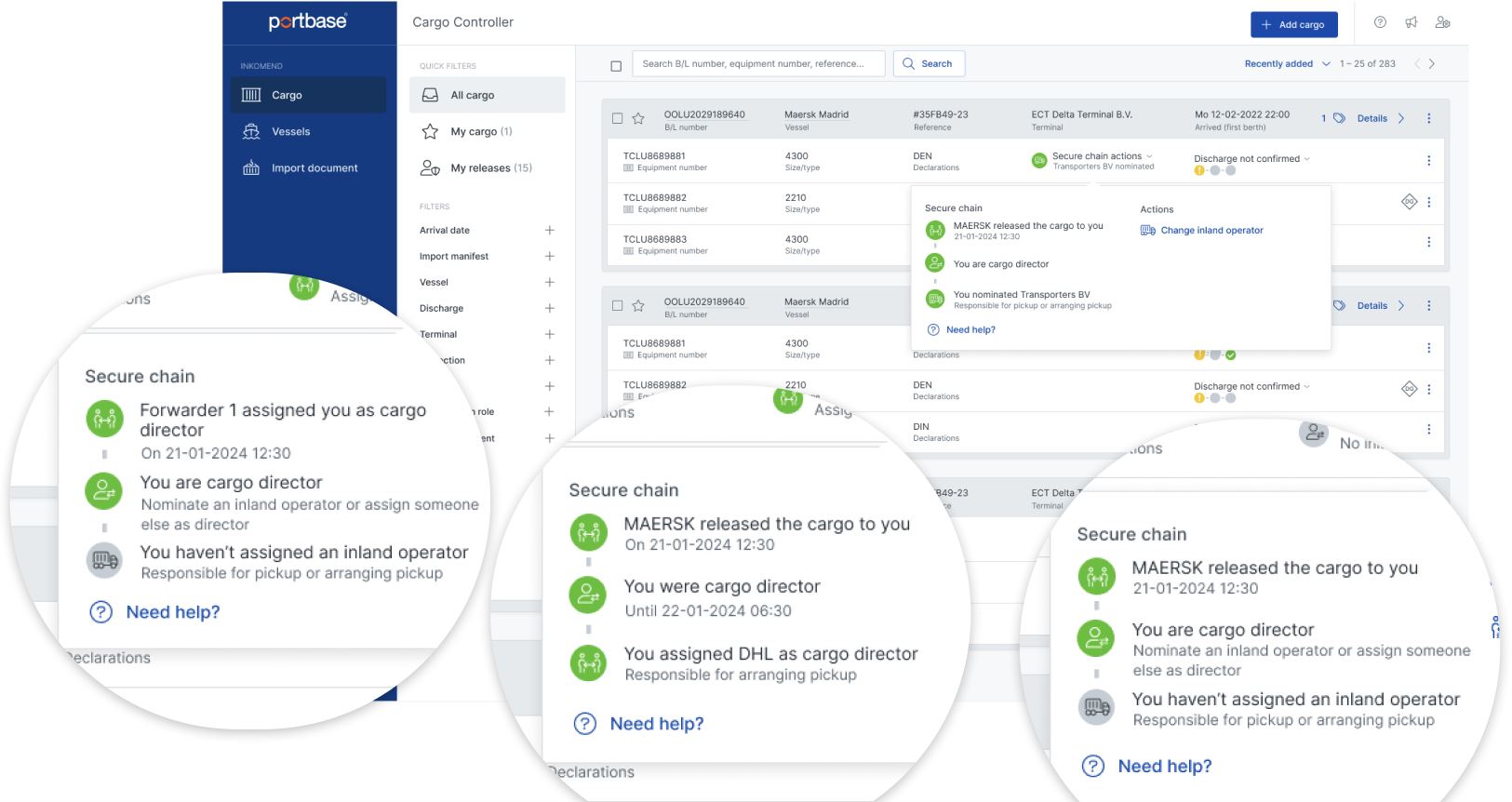De komende weken zal Portbase enkele wijzigingen vrijgeven met betrekking tot functionaliteiten voor de Vertrouwensketen binnen Cargo Controller en Cargo Release Manager.